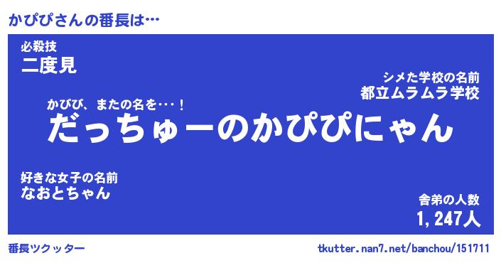 | ヒーロー風カッコイイあだ名 | 『スーパーカピピ』『ウルトラかぴぴマン』 |