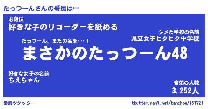 | 男性向けラノベタイトル風あだ名 | 『たっつーんの憂鬱』 |