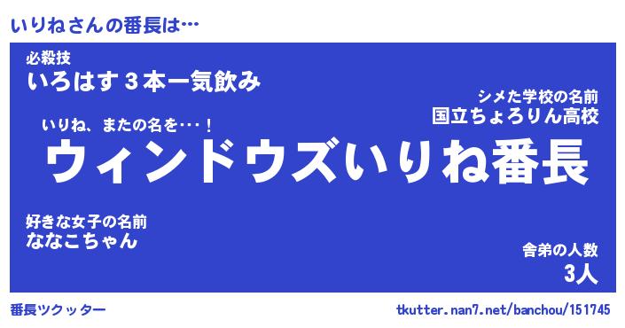 | 男性向けラノベタイトル風あだ名 | 『いりねの憂鬱』 |