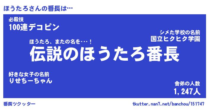 | 意味不明あだ名 | 『ペロリンほうたろ』『永久保存ほうたろ』 |