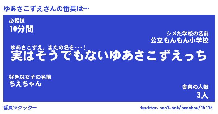 | 伝説のあだ名 | 『封印されしスナイパーゆあさこずえ』 |