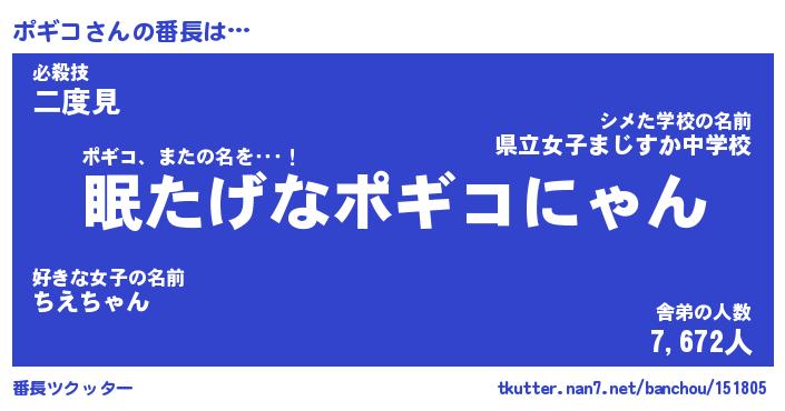 | ピコ太郎風あだ名 | 『ポコ十郎』『ピポ史郎』『ポギ六郎』 |