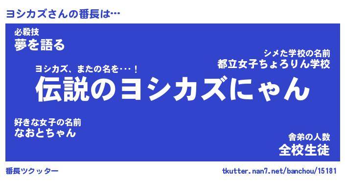 | ファンタジー風あだ名 | 『ヨシフェル』『エターナルヨシカズー』 |
