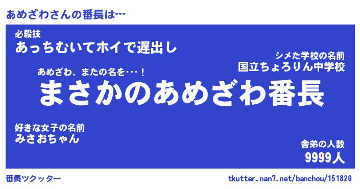 | 意味不明あだ名 | 『ペロリンあめざわ』『永久保存あめざわ』 |
