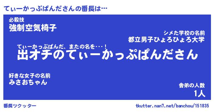 | 欧米人風あだ名 | 『マイケルてぃーかっぷぱんだ』 |