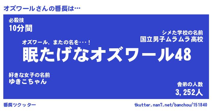 | ファンタジー風あだ名 | 『オズフェル』『エターナルオズワールー』 |
