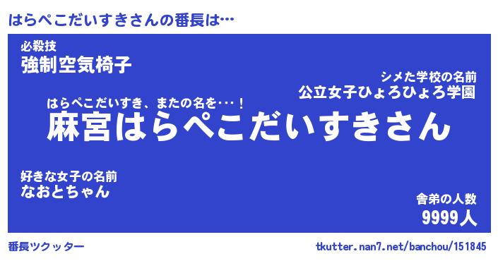 | 自動車の名前っぽいあだ名 | 『ハラティマ』『ハクア』『ハント』 |