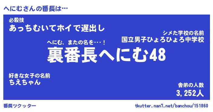 | ピコ太郎風あだ名 | 『ヘコ五郎』『ピヘ次郎』『ヘニ史郎』 |