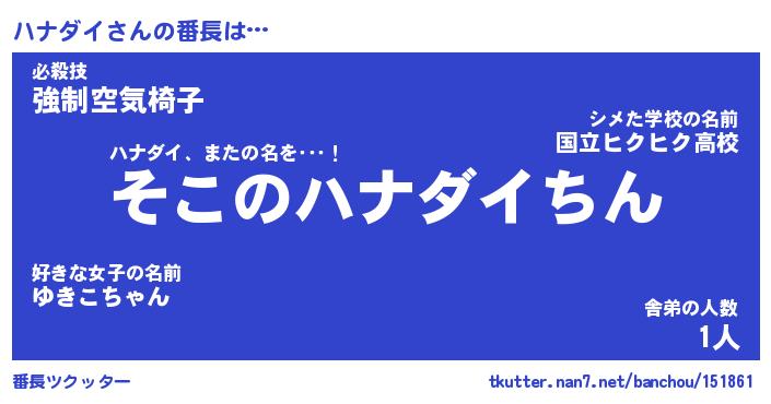 | 意味不明あだ名 | 『ペロリンハナダイ』『永久保存ハナダイ』 |