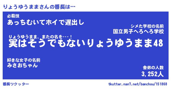 | 2回繰り返すあだ名 | 『りょりょ』『りりょょ』『うずうず』 |
