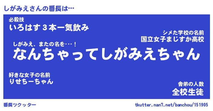 | ヒーロー風カッコイイあだ名 | 『スーパーシガミエ』『暗黒騎士シガ』 |