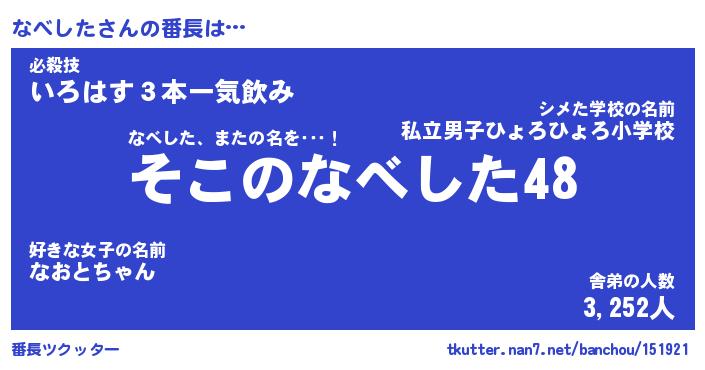 | 意味不明あだ名 | 『ペロリンなべした』『永久保存なべした』 |
