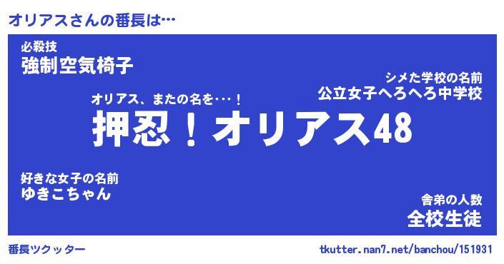 | ヒーロー風カッコイイあだ名 | 『スーパーオリアス』『暗黒騎士オリ』 |