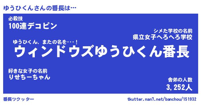 | 伝説のあだ名 | 『伝説のスナイパーゆうひくん』 |