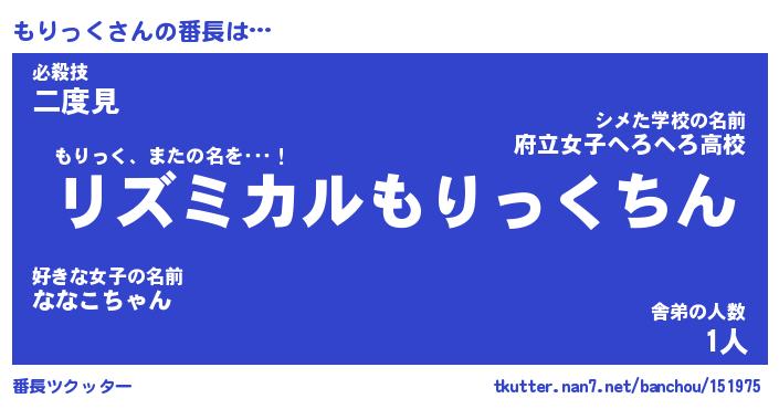 | 意味不明あだ名 | 『ペロリンもりっく』『永久保存もりっく』 |