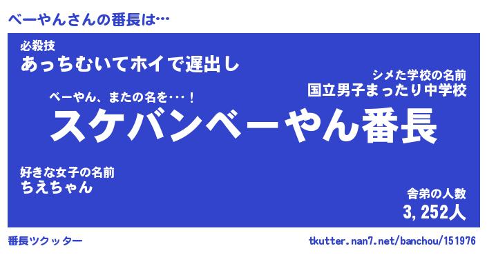 | ヒーロー風カッコイイあだ名 | 『スーパーベーヤン』『天弓騎士ベー』 |