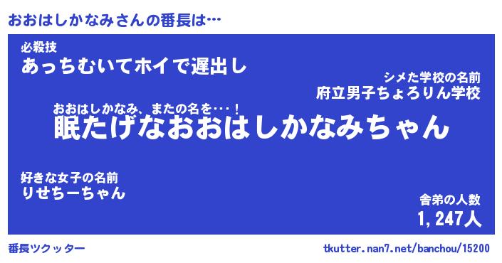 | 伝説のあだ名 | 『封印されしスナイパーおおはしかなみ』 |