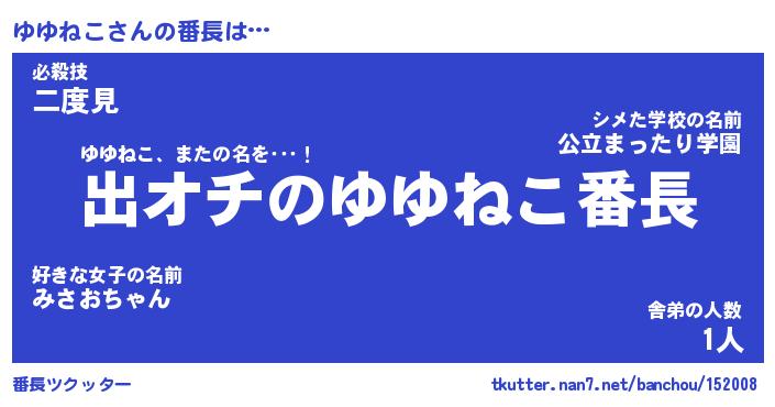 | 伝説のあだ名 | 『伝説のスナイパーゆゆねこ』 |