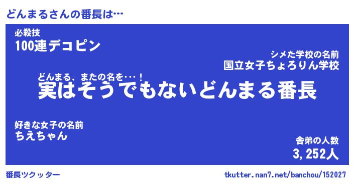 | 意味不明あだ名 | 『ペロリンどんまる』『永久保存どんまる』 |