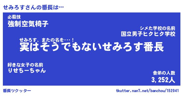 | 肩書あだ名 | 『せみろす店長』『せみろす国家主席』 |