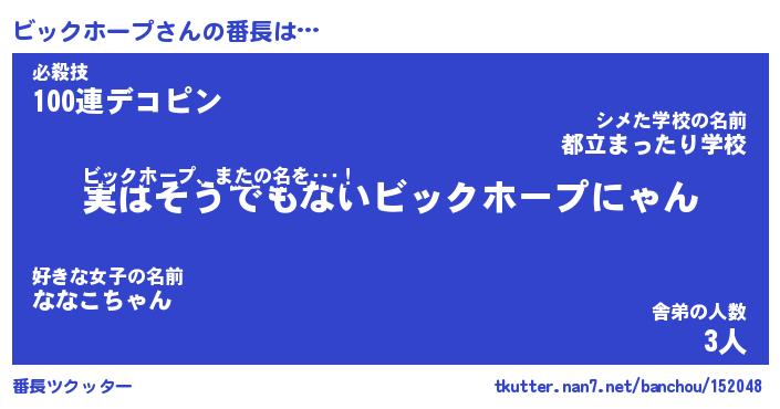 | ヒーロー風カッコイイあだ名 | 『スーパービックホープ』『黄金騎士ビッ』 |
