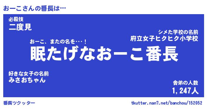 | 2回繰り返すあだ名 | 『おーおー』『おおーー』『ぬれぬれ』 |