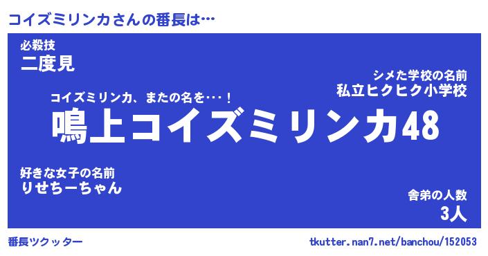 | 2回繰り返すあだ名 | 『コイコイ』『ココイイ』『ぬれぬれ』 |