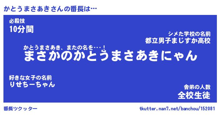 | 肩書あだ名 | 『かとうまさあき御曹司』 |
