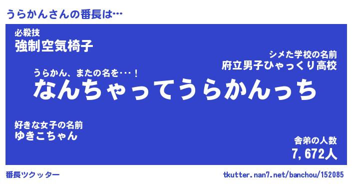 | 肩書あだ名 | 『うらかん社長』『うらかん総理大臣』 |