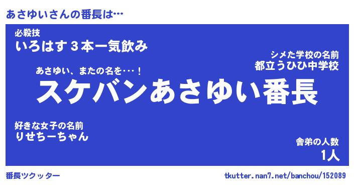 | ヒーロー風カッコイイあだ名 | 『スーパーアサユイ』『銀牙騎士アサ』 |