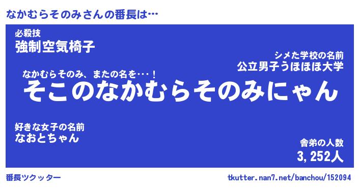 | 肩書あだ名 | 『なかむらそのみ御曹司』 |