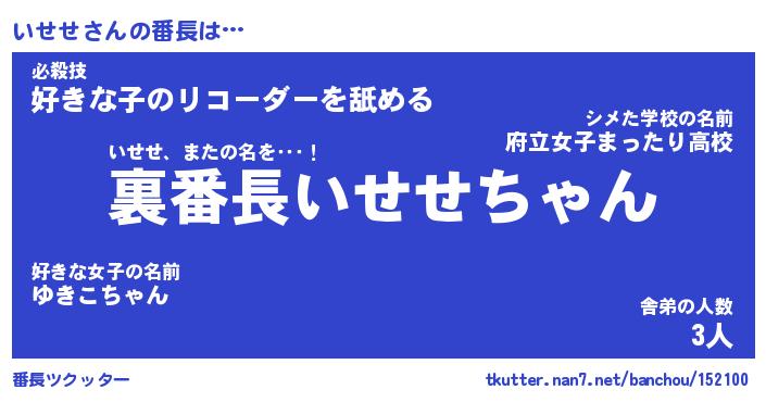 | ヒーロー風カッコイイあだ名 | 『スーパーイセセ』『ウルトラいせせマン』 |