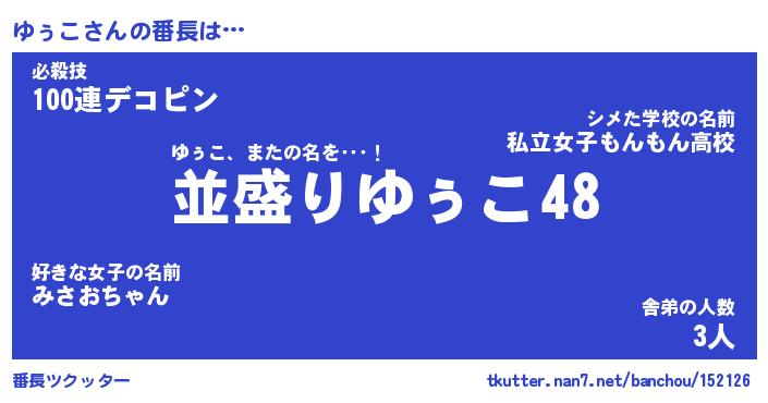 | ピコ太郎風あだ名 | 『ユコ太郎』『ピユ史郎』『ユゥ三郎』 |