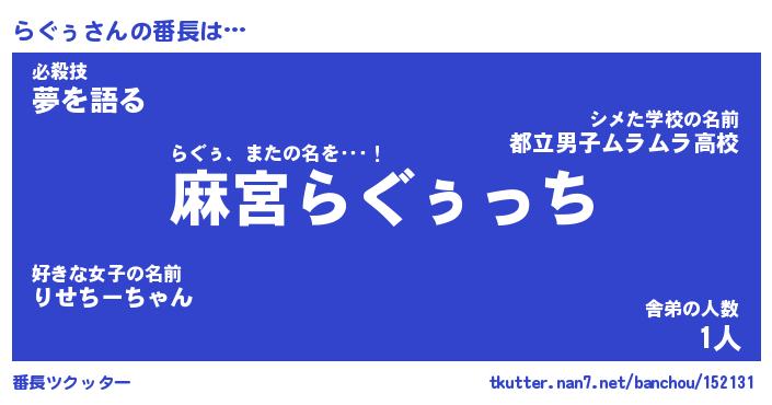 | 肩書あだ名 | 『らぐぅ社長』『らぐぅ国家主席』 |