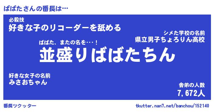 | 肩書あだ名 | 『ばばた御曹司』『ばばた国家主席』 |