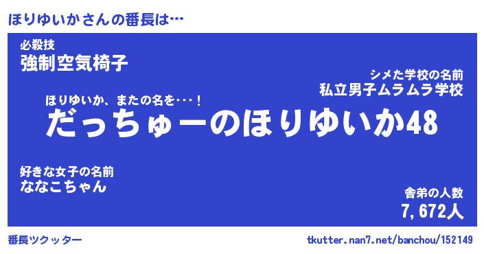 | 肩書あだ名 | 『ほりゆいか社長』『ほりゆいか総理大臣』 |