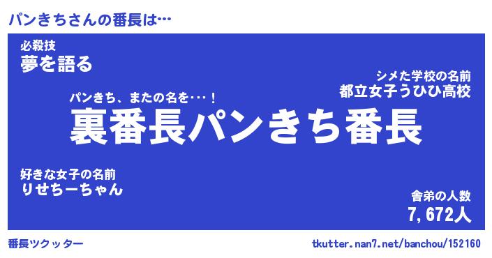 | ヒーロー風カッコイイあだ名 | 『スーパーパンキチ』『魔戒騎士パン』 |