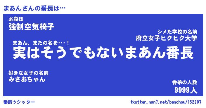 | ヒーロー風カッコイイあだ名 | 『スーパーマアン』『ウルトラまあんマン』 |