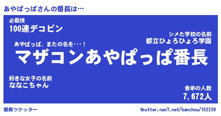 | 2回繰り返すあだ名 | 『あやあや』『ああやや』『ぬるぬる』 |