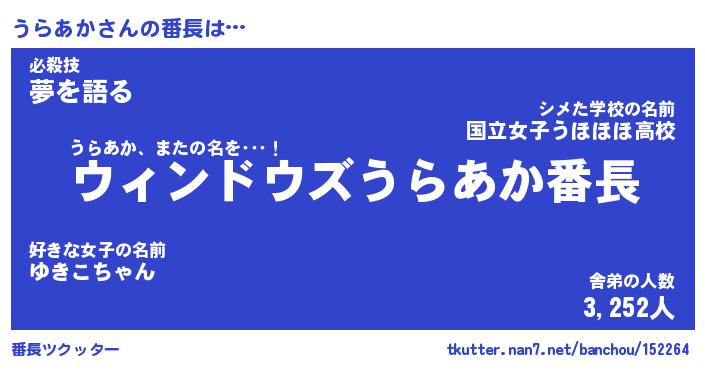 | 意味不明あだ名 | 『ペロリンうらあか』『永久保存うらあか』 |
