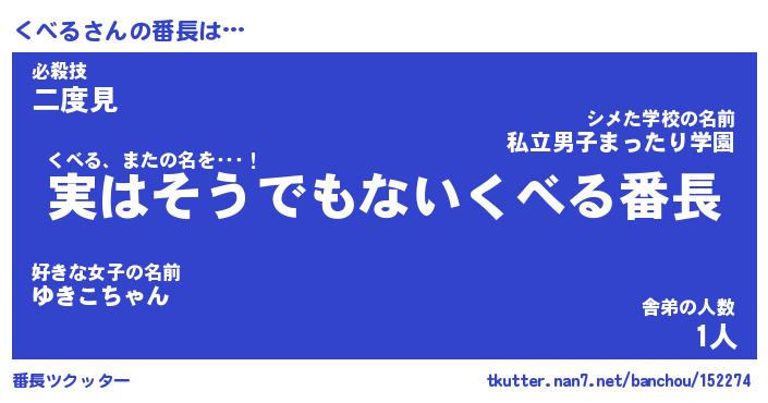 | 2回繰り返すあだ名 | 『くべくべ』『くくべべ』『あんあん』 |