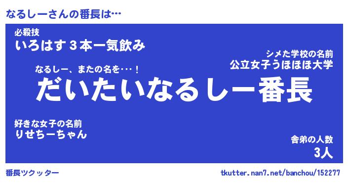 | 意味不明あだ名 | 『ペロリンなるしー』『永久保存なるしー』 |