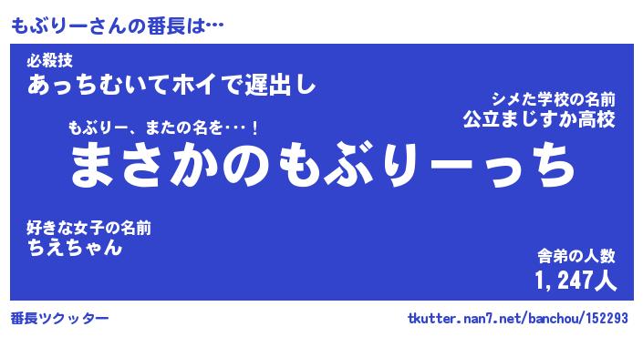 | ヘコむあだ名 | 『もぶにー』『酢こんぶ』『もぶっぺ』 |