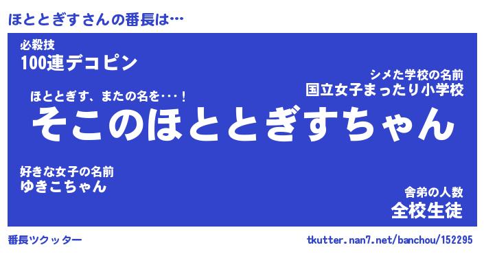 | 肩書あだ名 | 『ほととぎす御曹司』『ほととぎす大統領』 |