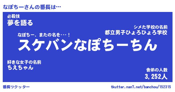 | 肩書あだ名 | 『なぽちー社長』『なぽちー国家主席』 |