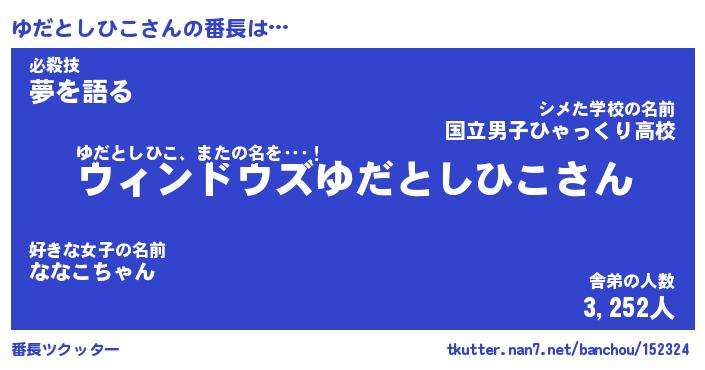 | 肩書あだ名 | 『ゆだとしひこ御曹司』 |