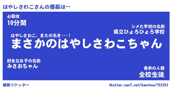 | ヒーロー風カッコイイあだ名 | 『スーパーハヤシサワコ』『暗黒騎士ハヤ』 |