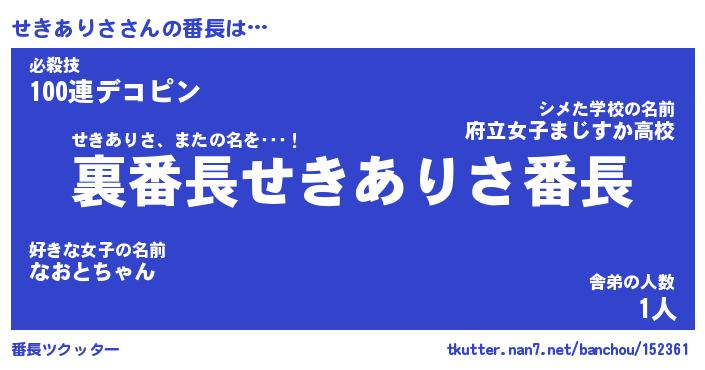| 伝説のあだ名 | 『不死鳥の竜騎士せきありさ』 |