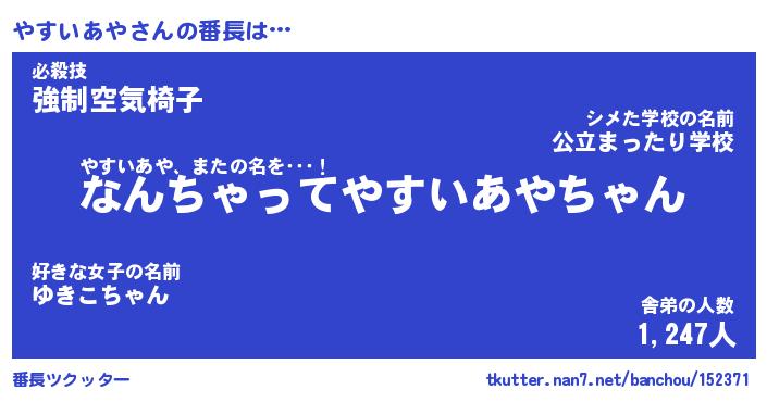 | 伝説のあだ名 | 『伝説のスナイパーやすいあや』 |