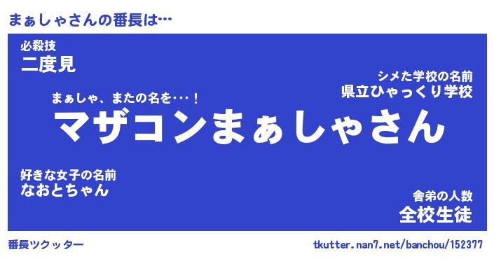 | ファンタジー風あだ名 | 『マァフェル』『エターナルマァシャー』 |